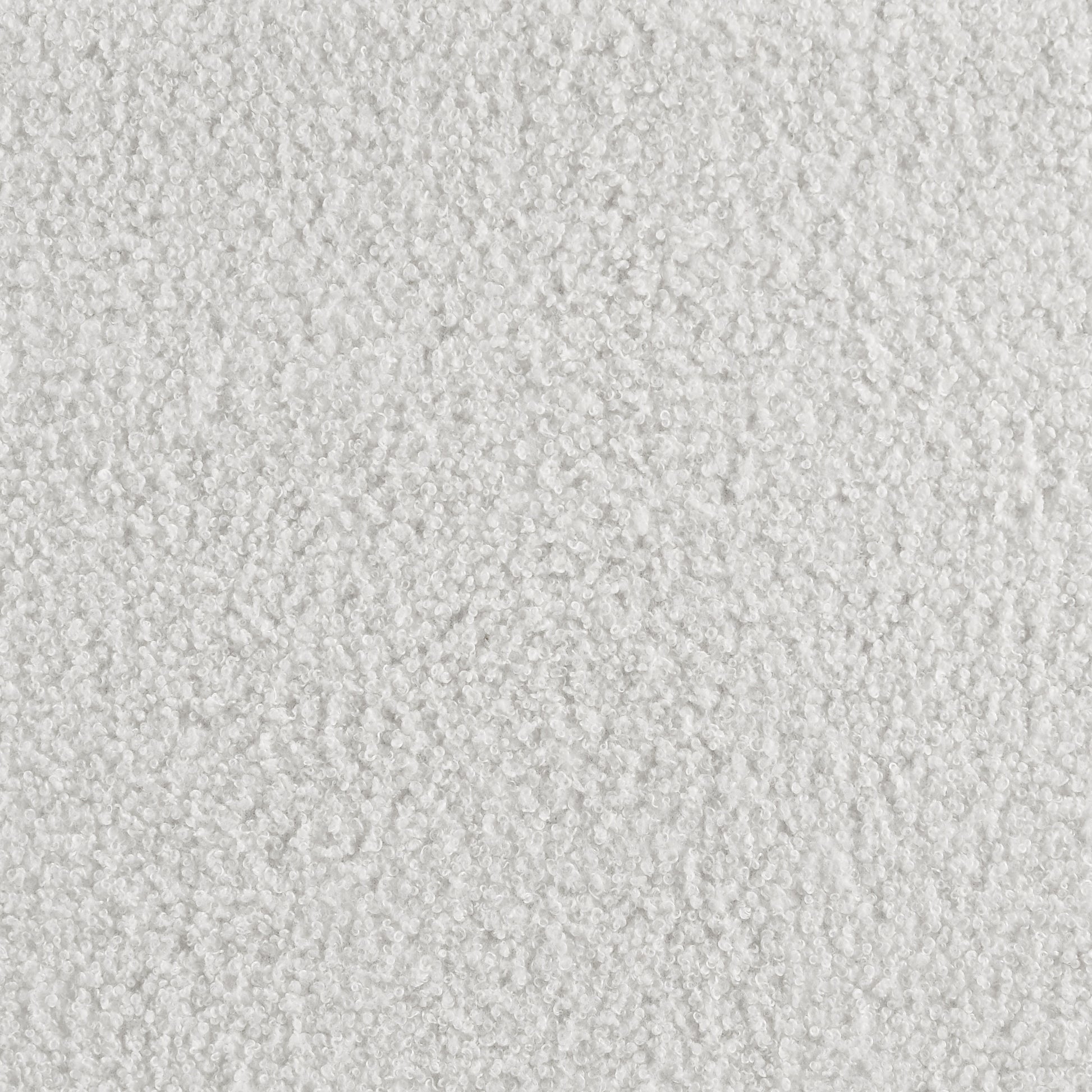 • Fresh white boucle upholstery is textured and inviting, offering dimension in your bedroom