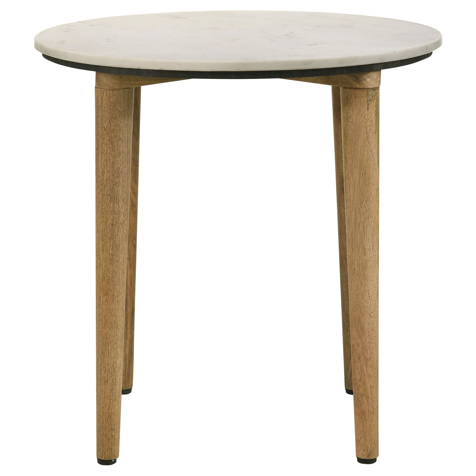 Elevate your living room with this coffee table set, combining a round coffee table and matching end table for a cohesive, natural aesthetic. Crafted with genuine white marble tops, each piece features unique veining that adds artisanal charm. The solid mango wood legs, finished in a natural tone, provide sturdy support and showcase organic grain patterns. Handcrafted in India, this set blends seamlessly with modern, minimalist, or rustic decor. Its earthy tones and durable materials ensure both style and longevity.
