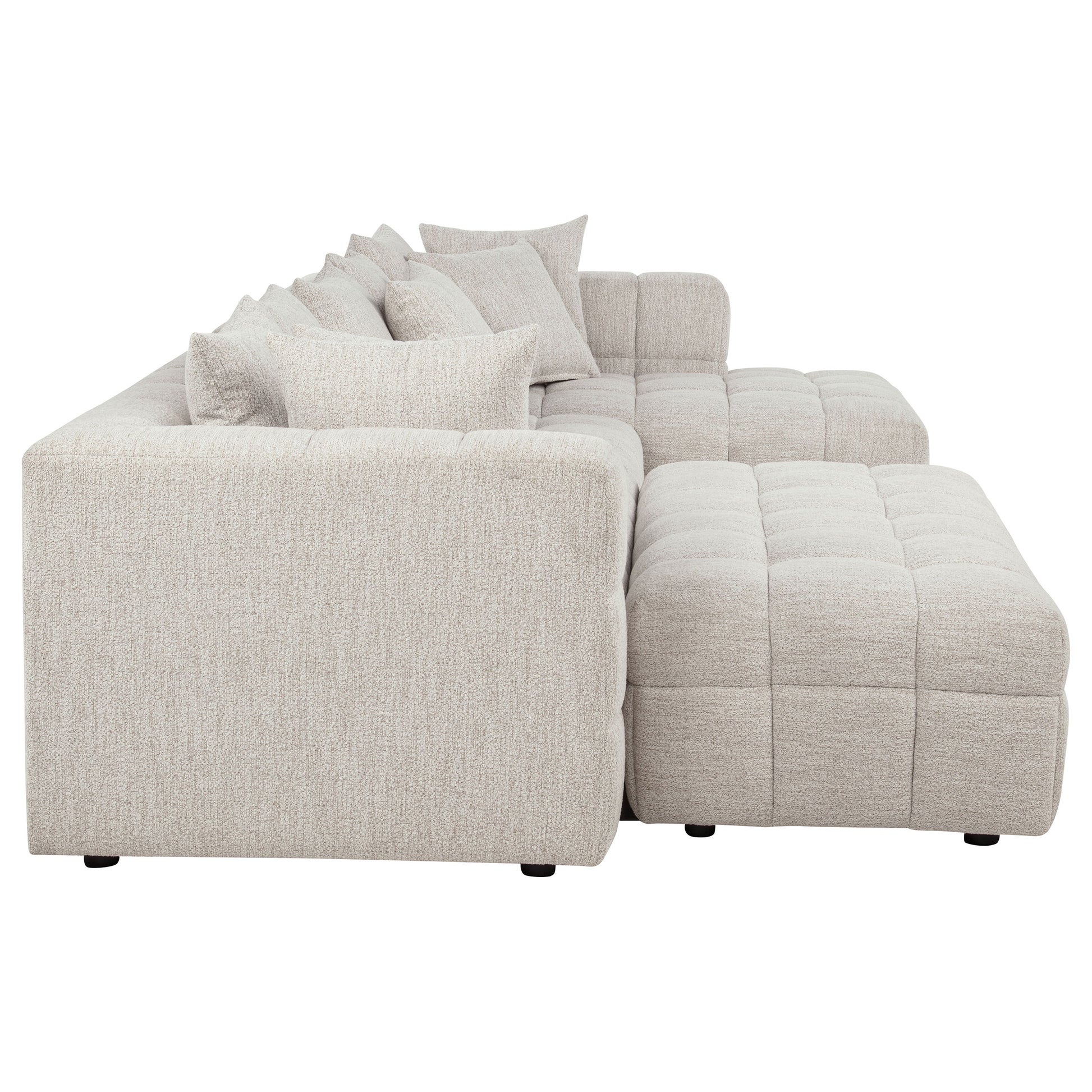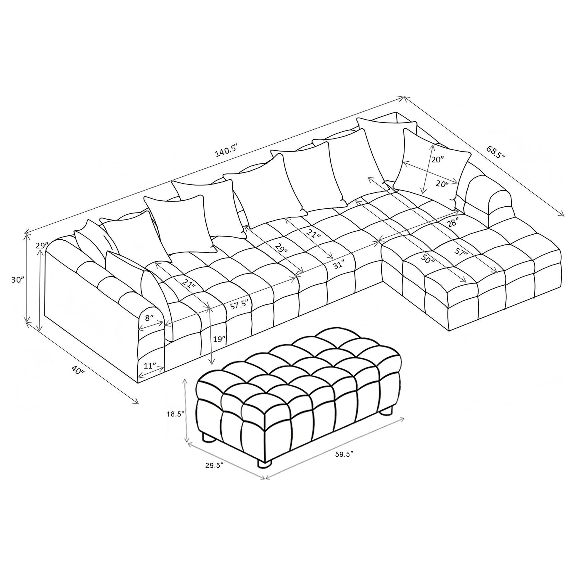 Sectional sofa creates a relaxed corner lounge with a low-profile silhouette, track arms, and tailored channel tufting suited to contemporary spaces. Soft fabric upholstery covers foam cushioning with polyester fiber support over a pine and plywood frame with wood reinforcement. The modular design helps you shape open living rooms, dens, or lofts with flexible seating that feels cohesive. Use it to anchor conversation areas, stretch out after long days, and keep everyday lounging comfortable and organized.
