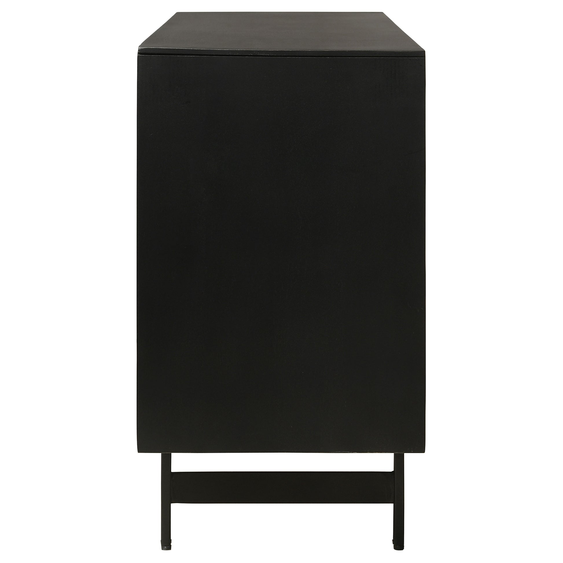 Expertly carved from robust mango wood, this accent cabinet flaunts a captivating 3D tile pattern on its door. The natural finish enriches its depth, complemented by the contrasting black top and sides, infusing a touch of modern flair. This piece seamlessly marries artistry with functionality, making it an indispensable addition for contemporary homes.