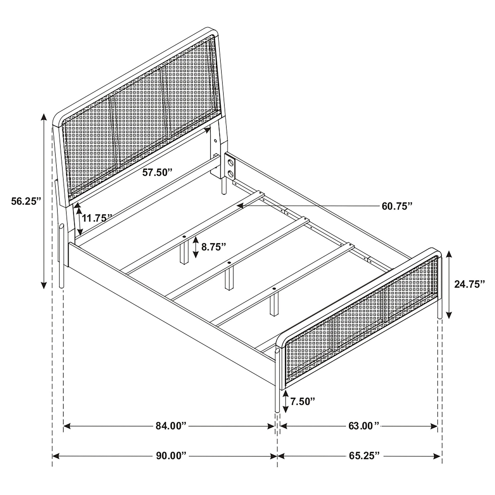 • Bed crafted with solid wood, metal, and open cane panels for a fresh modern trend