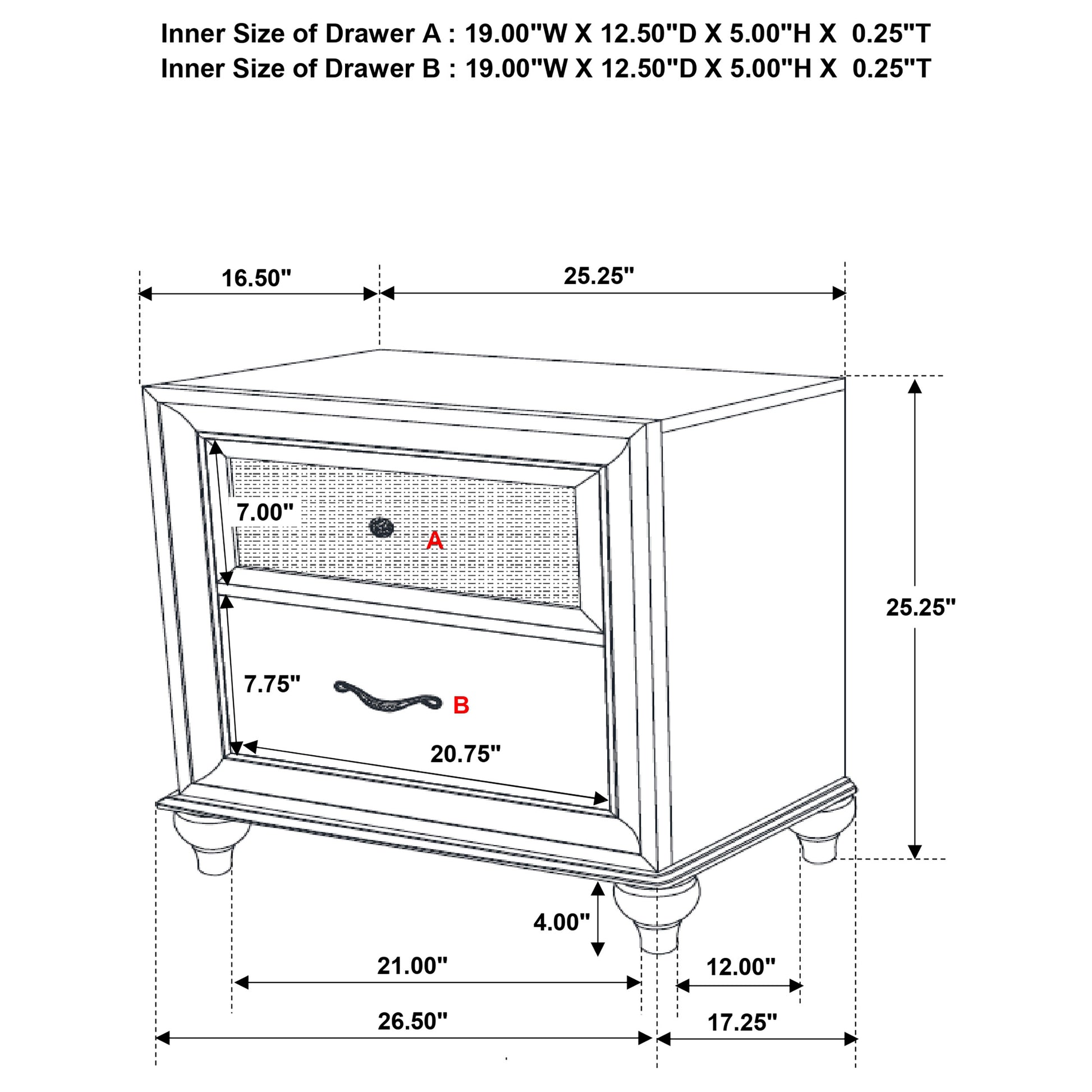 • Drawer Weight Limit: 45 Lbs