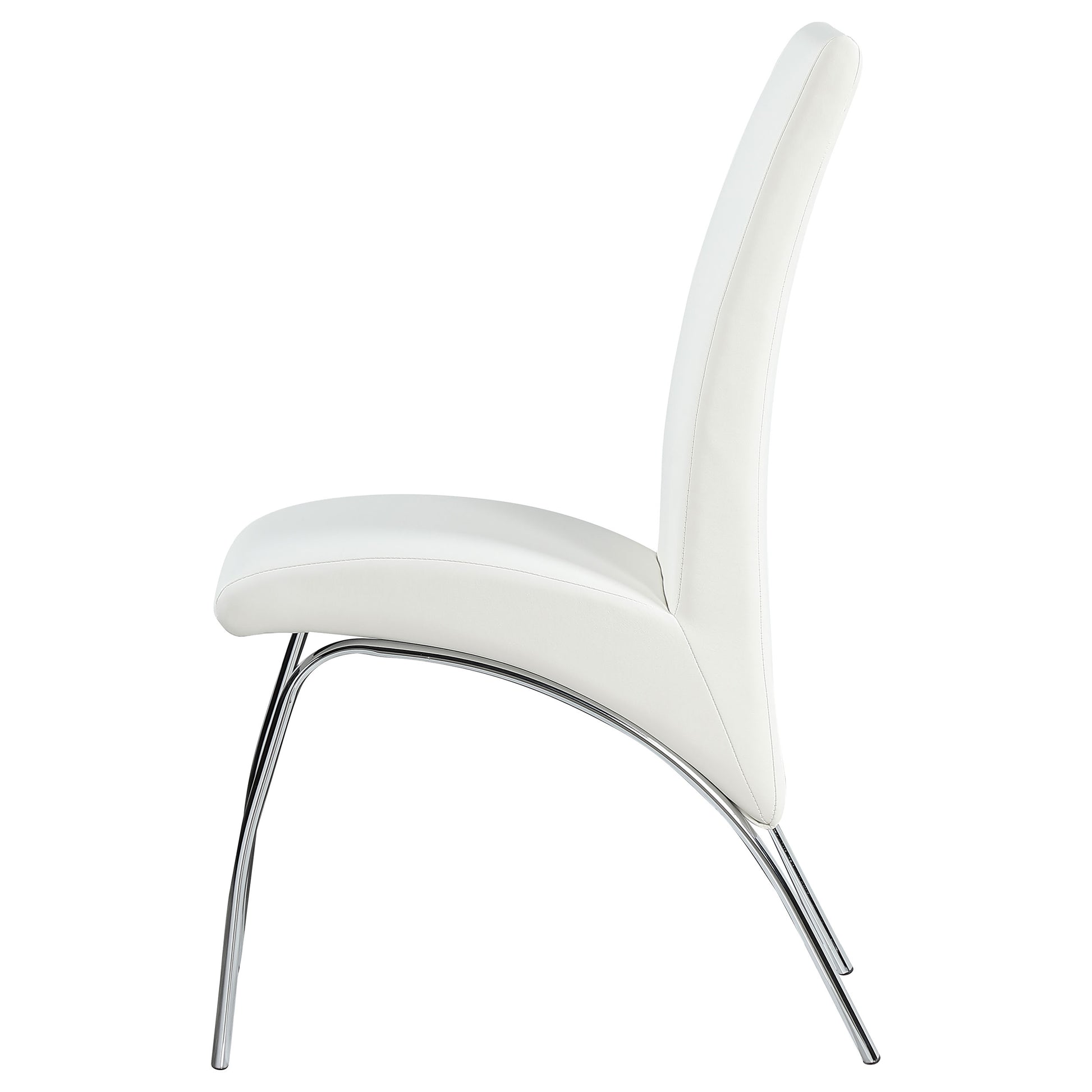 Elevate your dining space with this modern dining chair, featuring sleek white polyurethane upholstery that brings a crisp, clean look to any room. The chair’s gracefully curved backrest and seat offer both style and comfort, making it ideal for long dinners and casual gatherings alike. Supported by sturdy chrome metal legs, this chair has a contemporary flair that adds a polished touch to your dining area. Its minimalist design easily complements modern and contemporary decor styles, creating a versatile seating option for various settings. Enjoy a chic and functional piece that enhances the ambiance of your dining room.