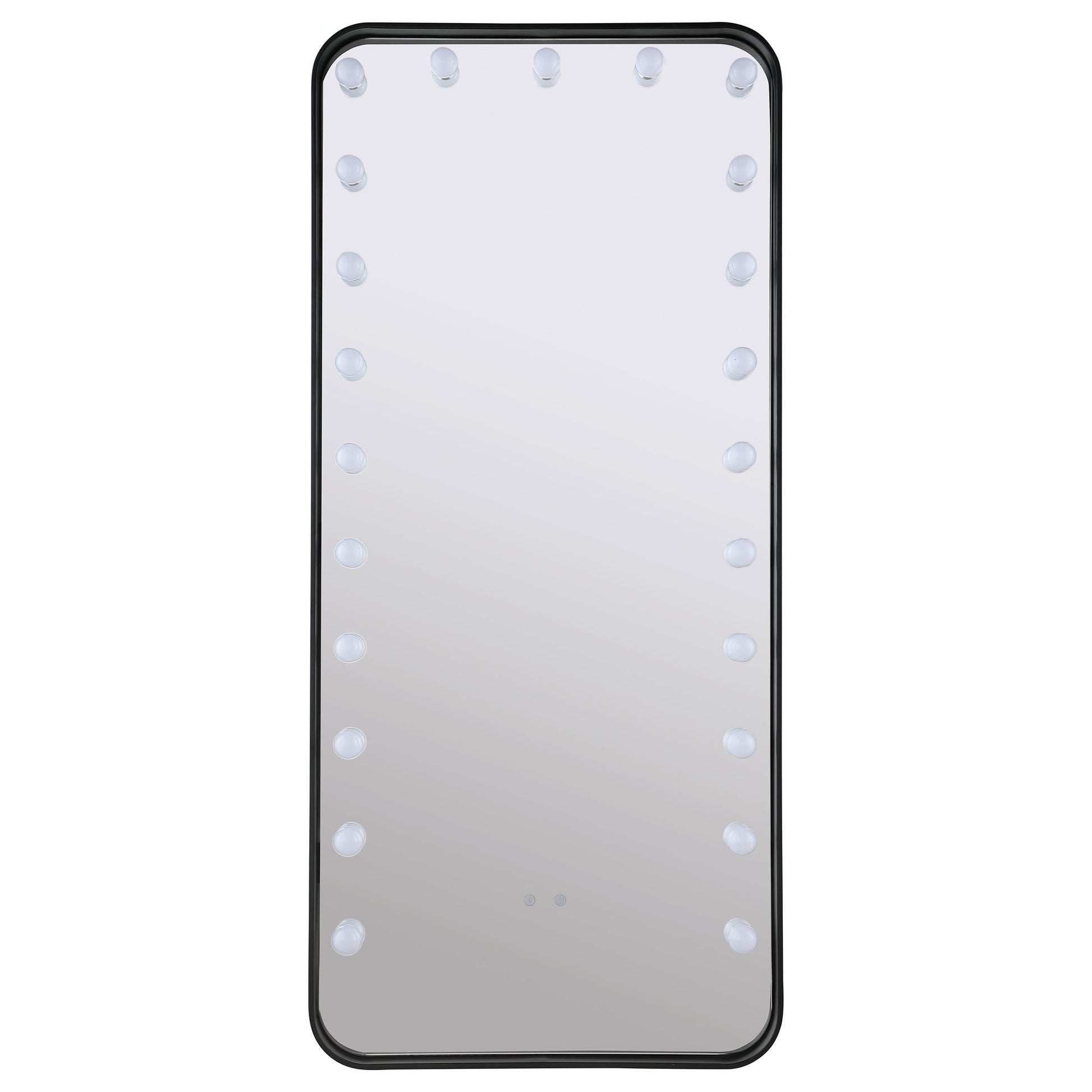 Dress up your walk-in closet or bedroom dressing area with a standing mirror that includes lights. It's got Hollywood glam appeal with compact globe lights on three sides, delivering energy efficient illumination that's bright and even for checking outfits, hair and makeup each morning. The tall mirror features rounded corners with a deep black finish metal frame that offers dimensional character. There's even a Bluetooth speaker built into the mirror, great for music or podcasts in the morning and evening. The mirror comes with a tip-over restraint for added peace of mind.