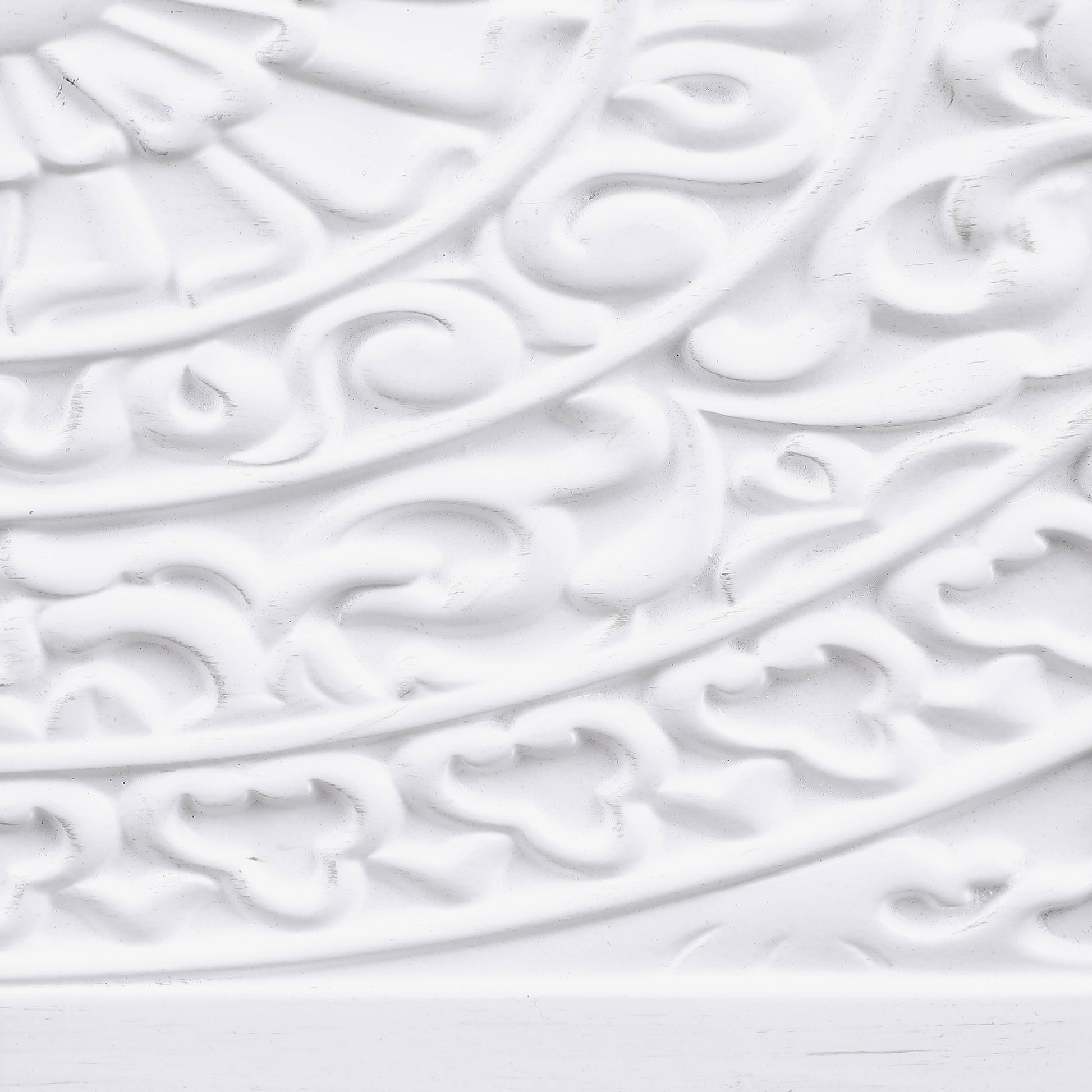 • Cool white finish is bright and airy, perfect for an entry, living area, or bedroom