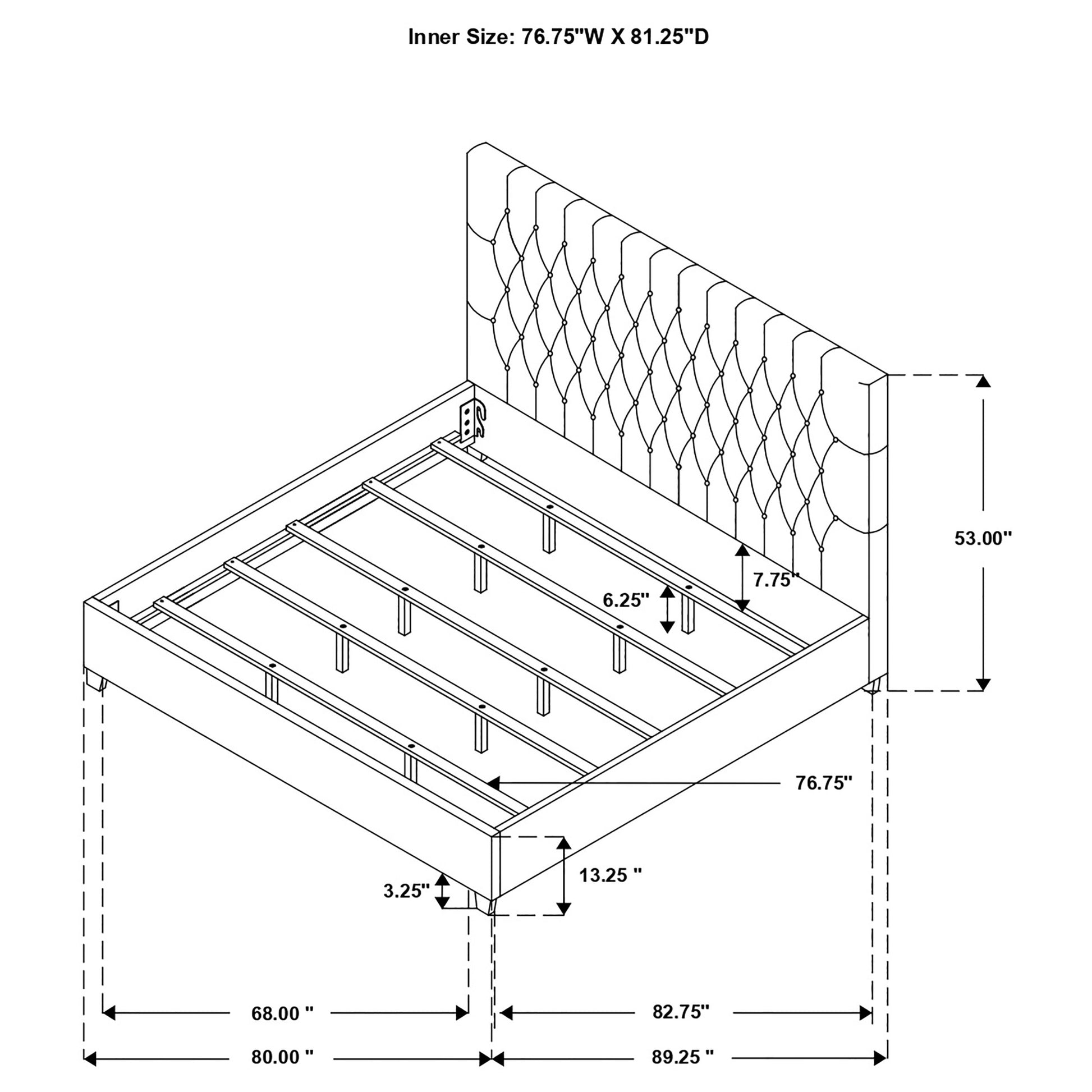 • Eastern king upholstered bed with tall button-tufted headboard