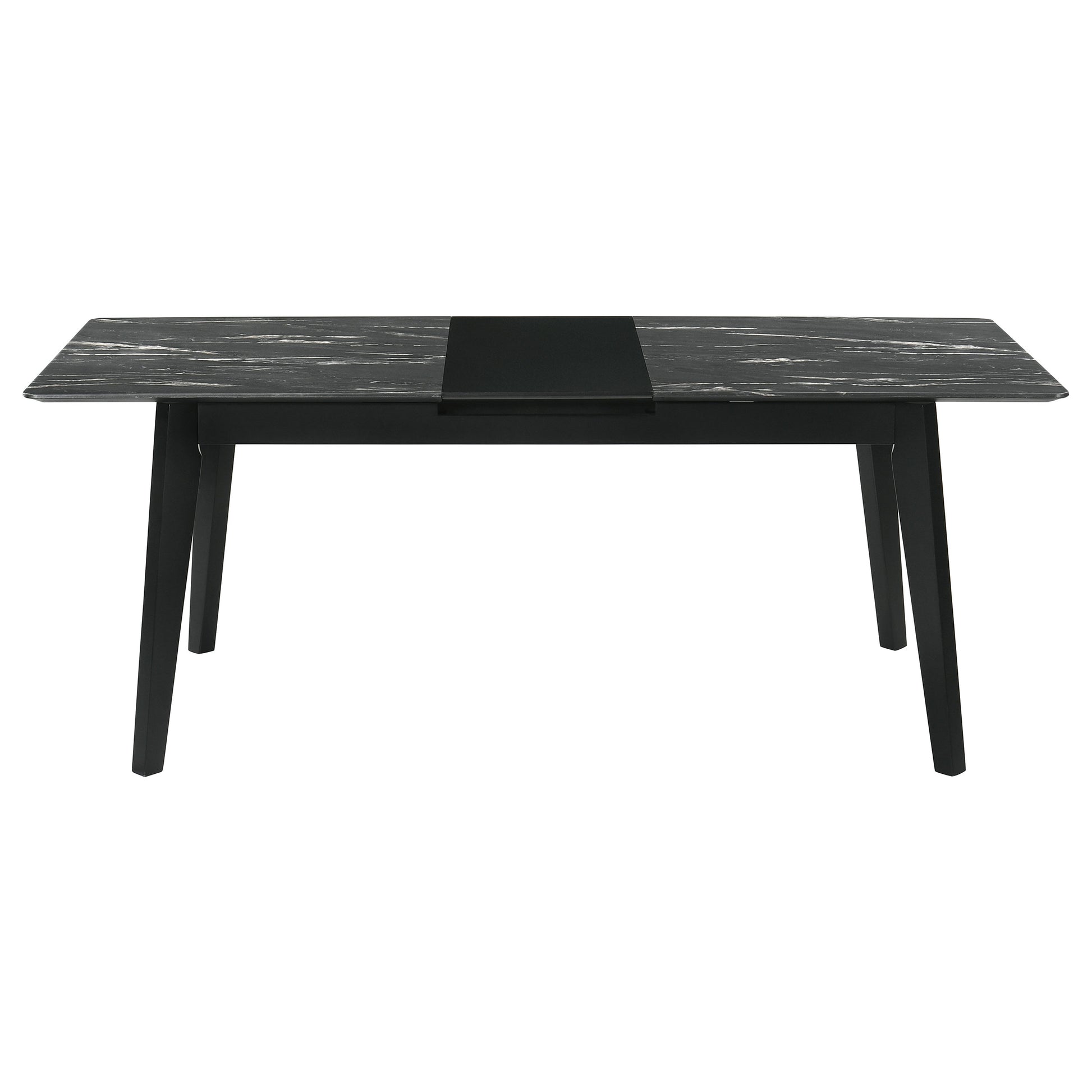 Envision your gatherings transformed with this exquisite dining set, where the sleek lines of modern design meet the timeless allure of faux marble. The table's luxurious black marble-esque top is a symphony of style, supported by fin-style legs that ground it with a touch of sophistication. As your ensemble grows with the seamless self-storing extension, the dining tableau adapts, offering a spacious stage for both feasts and intimate conversations. Accompanying the table, the Danish Y-shaped wishbone chairs, dressed in black and beige, whisper of coastal breezes and relaxed elegance, their form both a nod to tradition and a statement of contemporary grace. This dining set doesn't just host meals; it curates experiences.