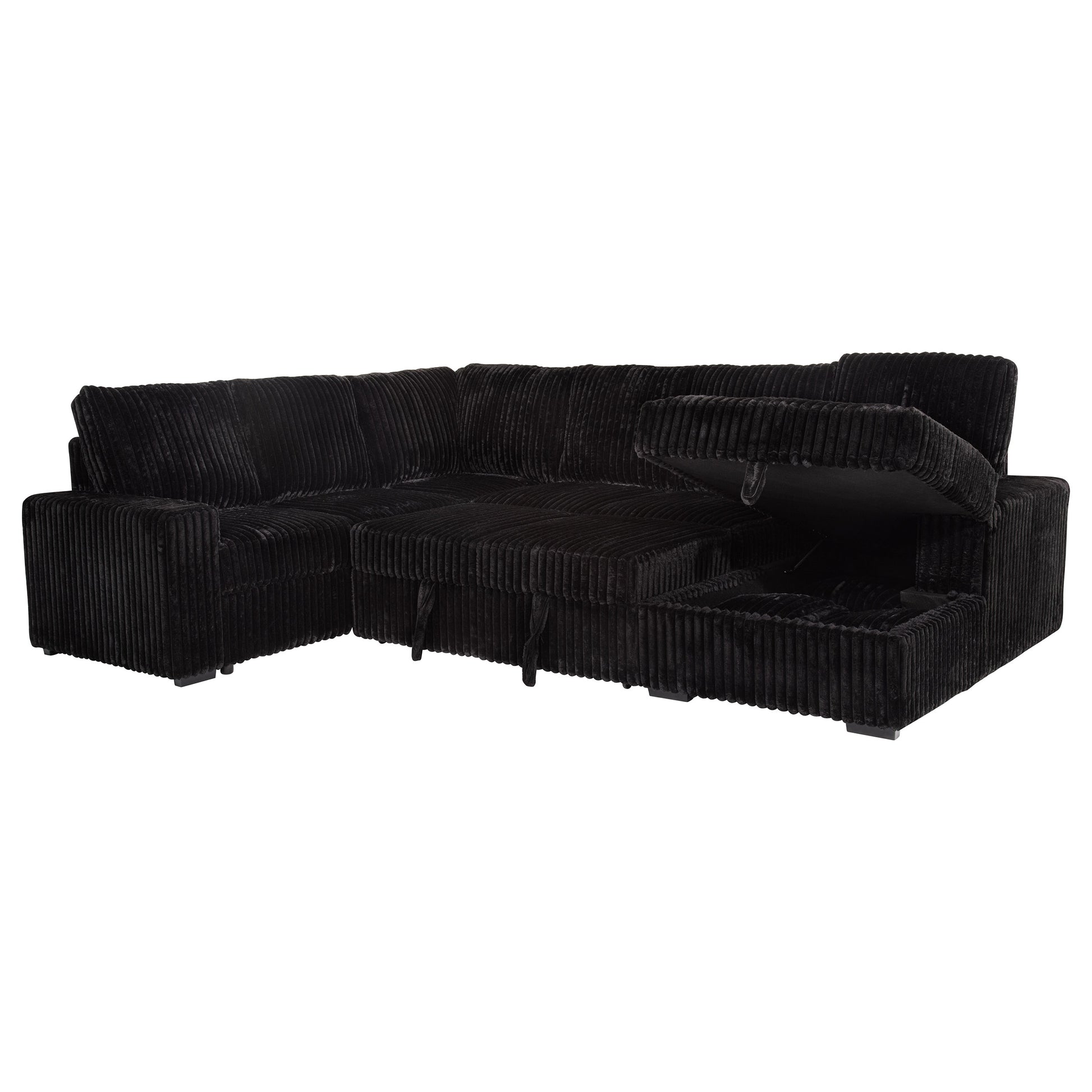 Devonshire Sleeper Sectional Sofa Storage Chaise Black