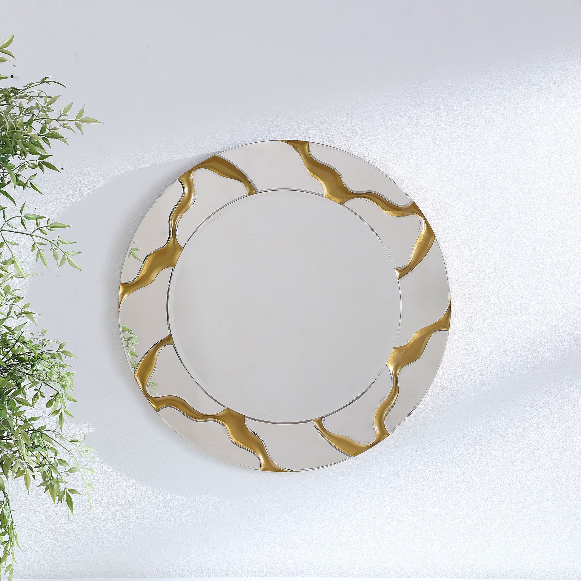 Breathe sophistication into surrounding decor with a modern wall mirror. It boasts a round profile, complete with a center mirror and a mirrored frame. Both are backed by MDF for added durability. The mirrored frame is enhanced with rivers of gold, creating a crackle effect that's warm and organic in an elegant living space or bedroom. Choose a showcase spot over the mantel or a console table for this stunning design.