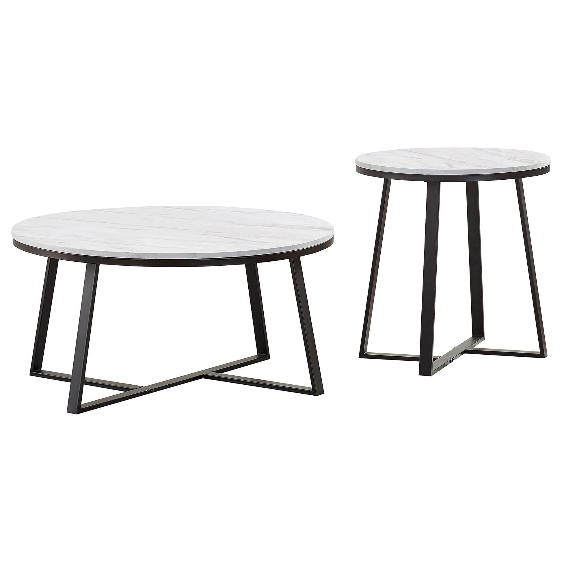 Hugo 2-piece Coffee and End Table Set White Faux Marble