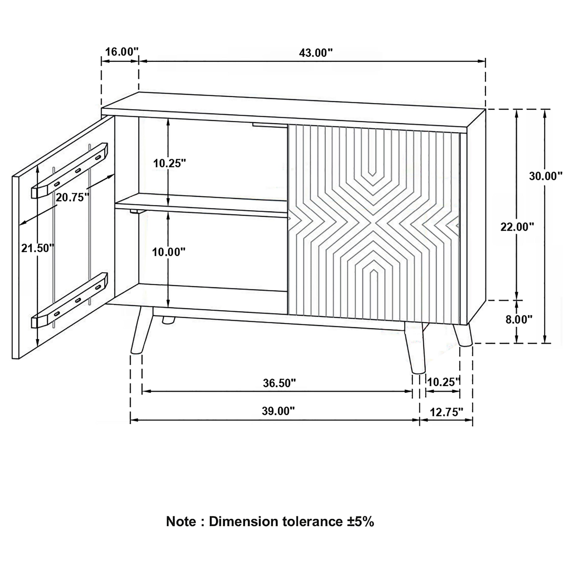 Add a bold statement to your space with this two-door accent cabinet, showcasing a striking black and gold geometric design against a whitewashed mango wood frame. The solid mango wood construction ensures durability, while the gold inlay diamond pattern creates a striking contrast for a modern yet timeless look. Angled tapered legs lend a mid-century modern flair, making this cabinet an eclectic and stylish addition to entryways, dining rooms, or living spaces. With spacious interior storage, this piece blends artistic design with everyday functionality.