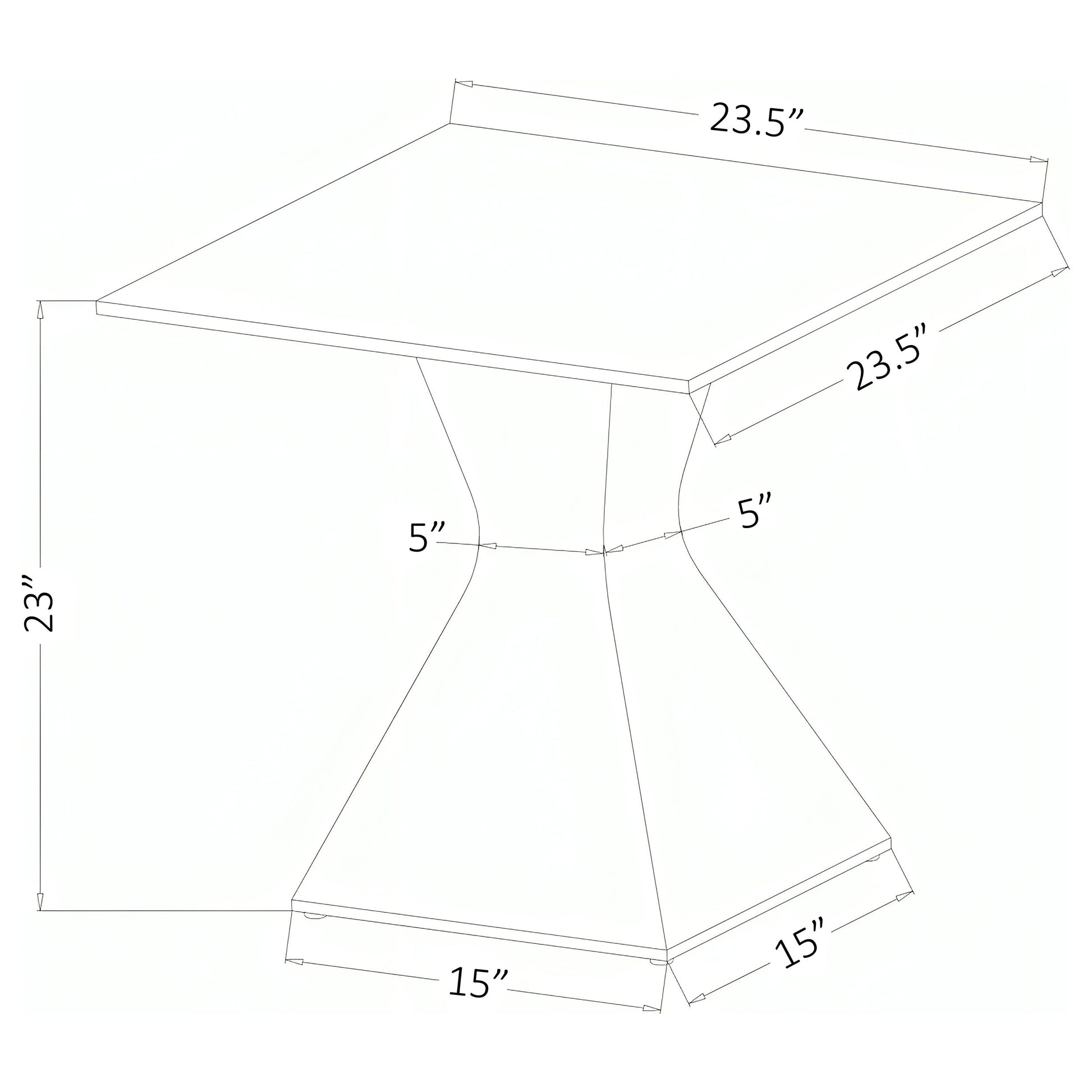 Introduce stylish allure with this modern end table, showcasing an hourglass-inspired base in a polished silver finish. Constructed with stainless steel and tempered glass, it features a square top with a beveled edge, adding dimension and refinement. The clear glass highlights the sculptural design of the base, reflecting light and creating visual intrigue. Perfect for modern interiors, this table combines bold artistry and functionality to elevate any living space.