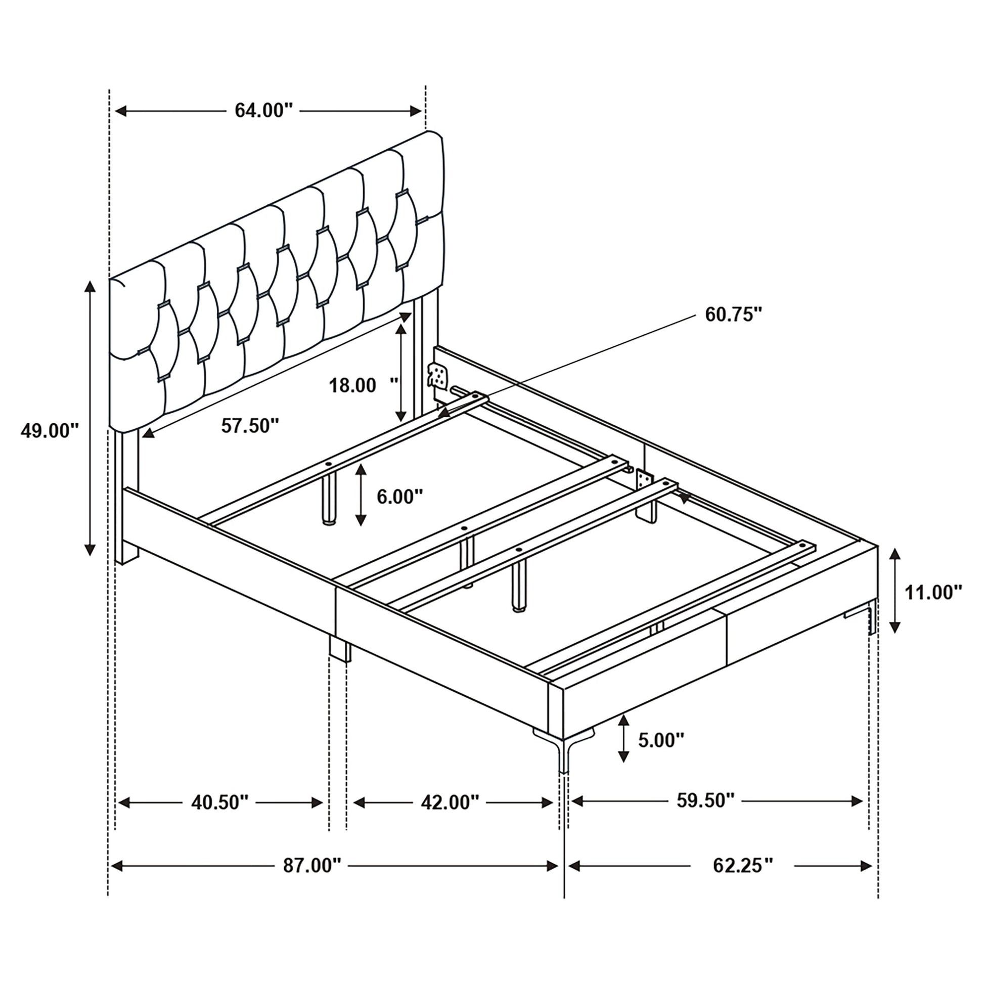 • Upholstered bed with a diamond tufted headboard offers a soft place to lean back and relax