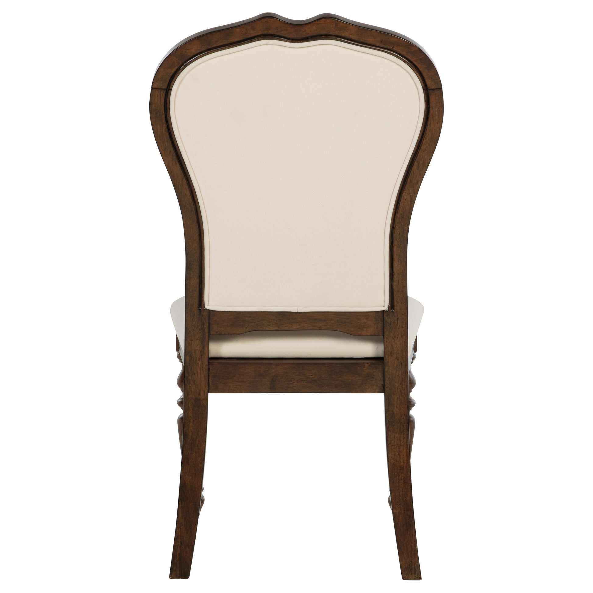 Complement your chic dining ensemble with a set of two traditional dining side chairs. Each boasts durable construction in rubberwood, complete with a rich brown finish. Chairs are designed with decorative rounded backs, framed in wood to create definition and character. Upholstery is paired with foam and features a crisp ivory color, creating contrast and depth against the rich wood grain. Legs are turned, with decorative stretchers that add detail and intricacy to your kitchen or dining room.