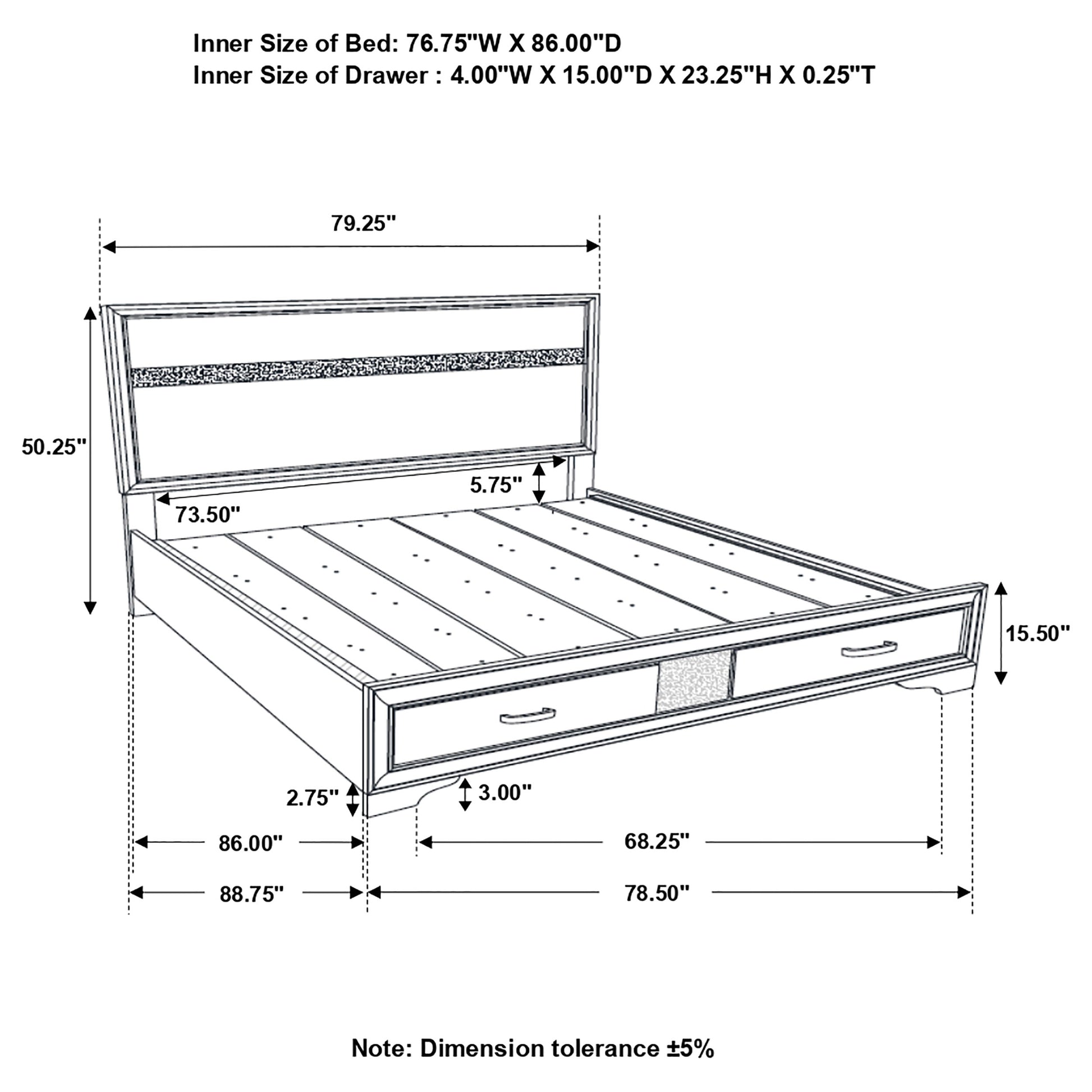 Miranda 51-inch Wood California King Storage Panel Bed White