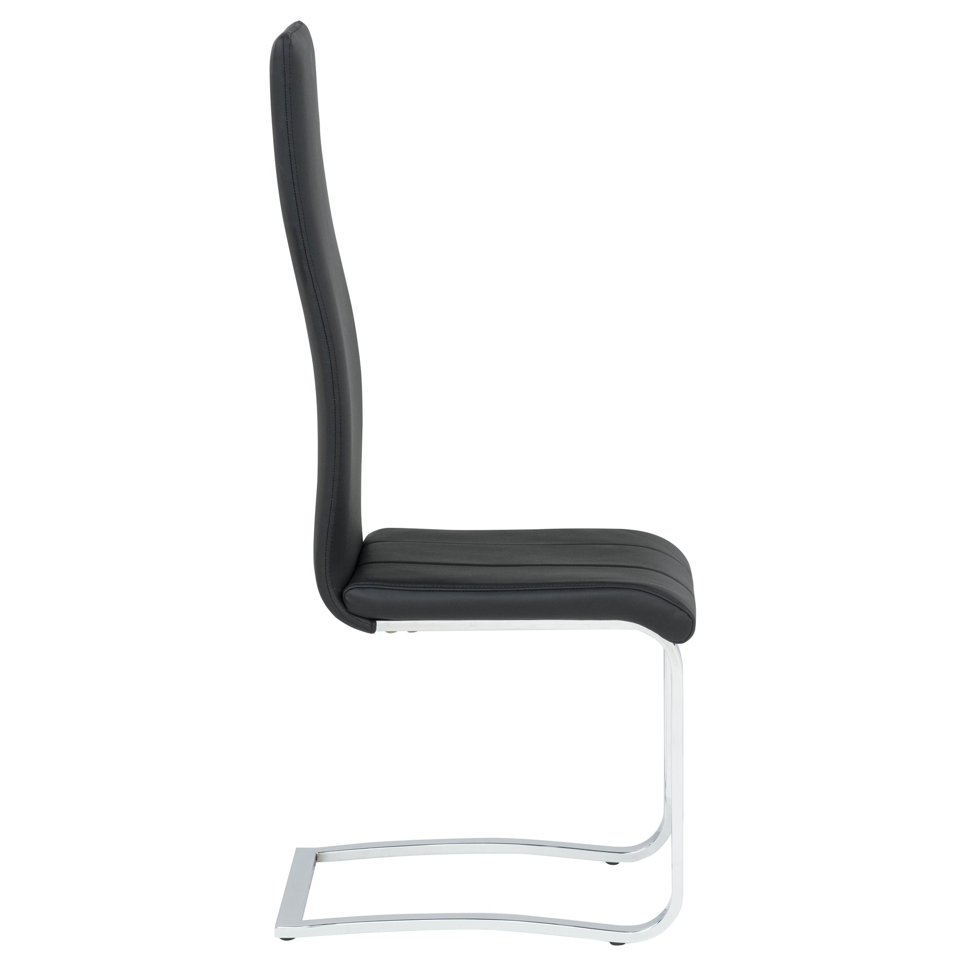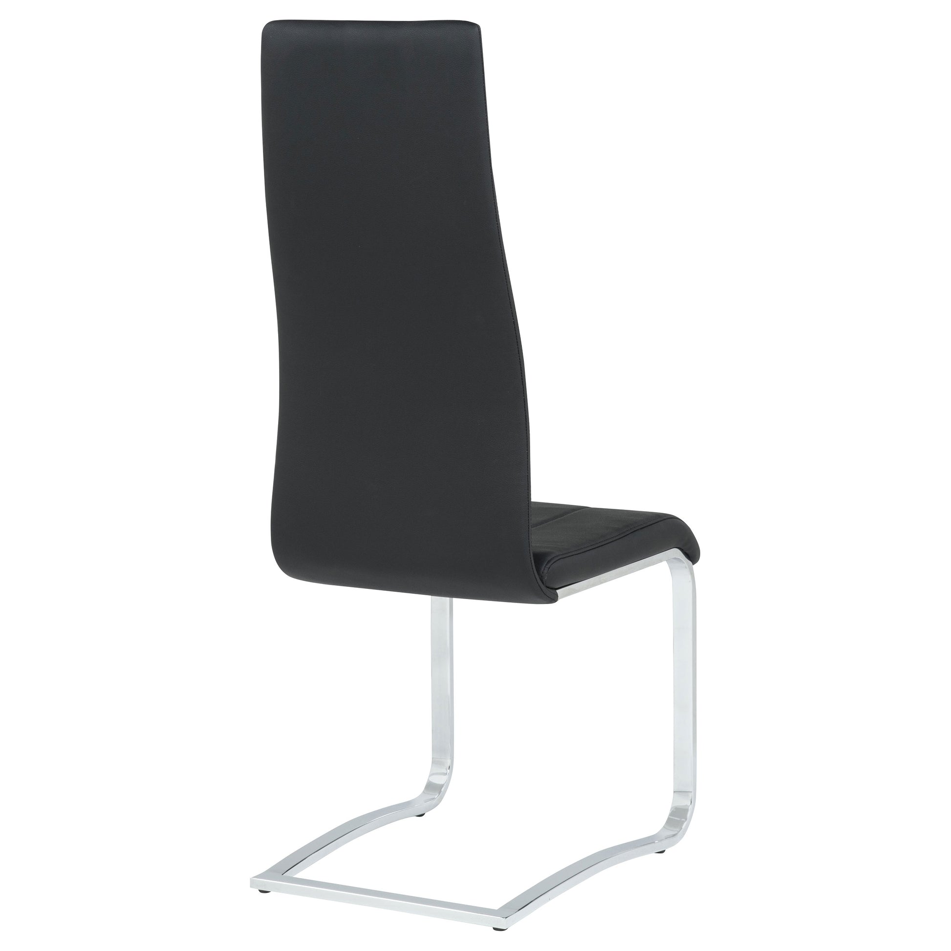 Bring sleek sophistication to your dining area with this high-back side chair in rich black leatherette. The iconic Breuer-inspired silhouette is paired with a cantilever chrome base for a clean, modern look. Designed for comfort, the ergonomic backrest offers excellent support, while the armless frame provides an open, contemporary feel. A perfect fit for minimalist, modern, or industrial-style dining spaces.