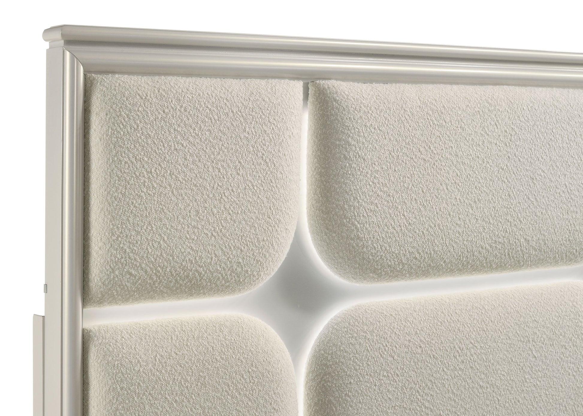 • Modern four-piece California king bedroom set in pearl white finish