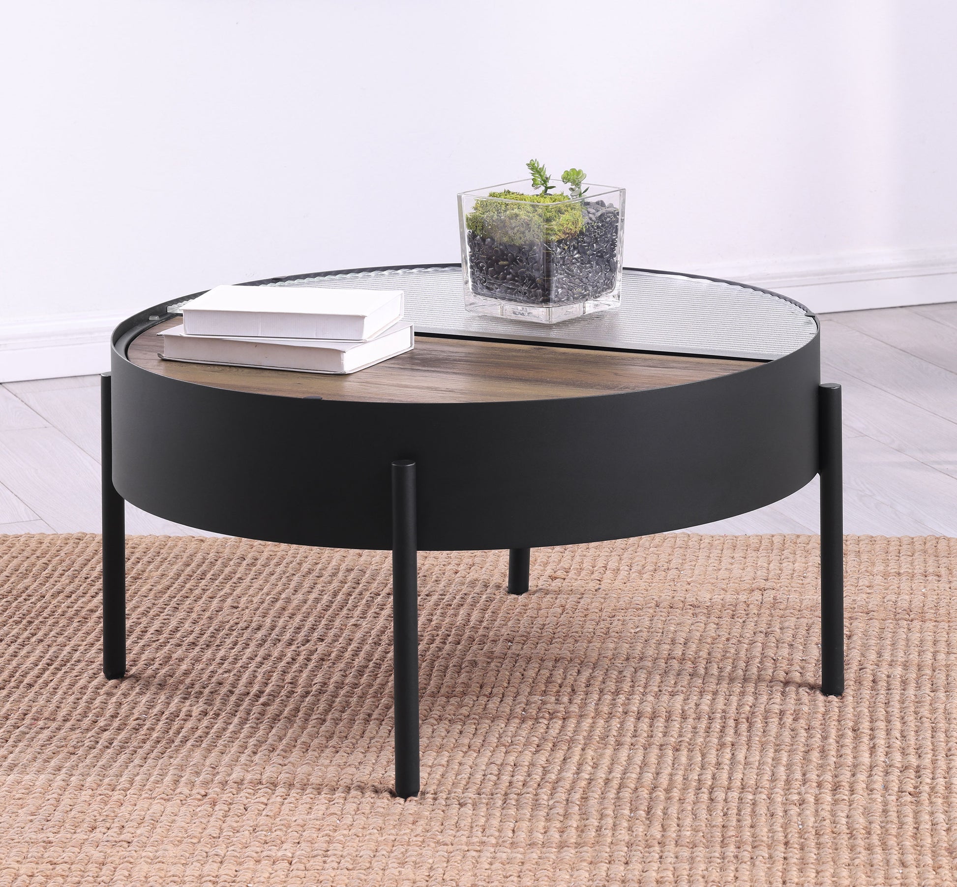 Ozella Round Coffee Table with Hidden Storage Sandy Black