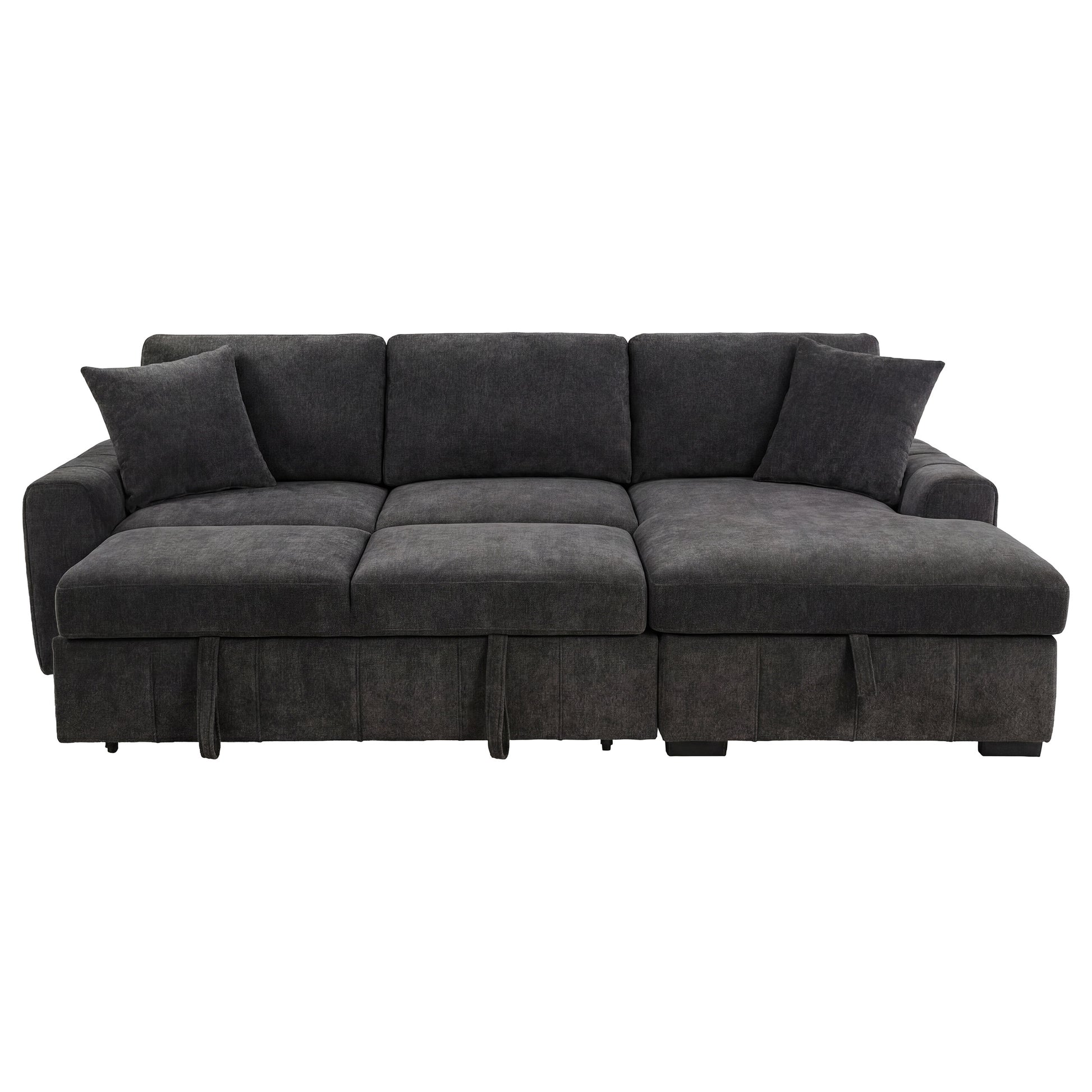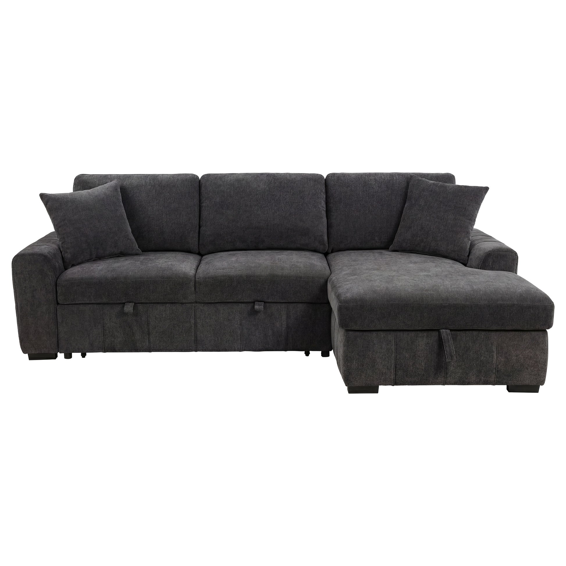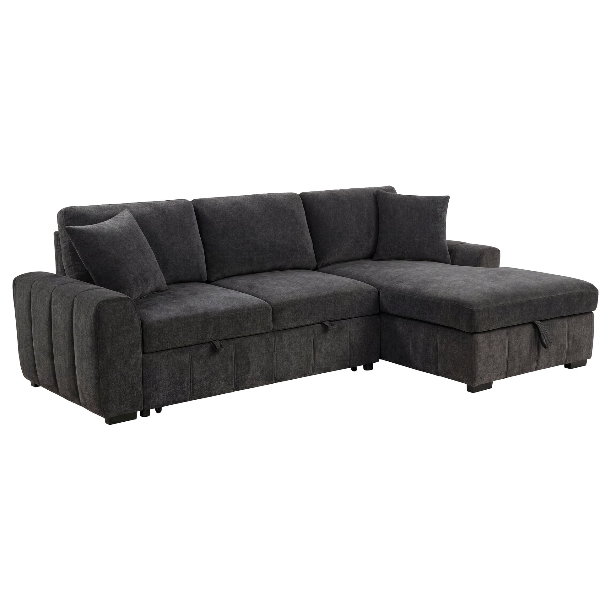 • Grey sleeper sectional sofa with right-arm-facing chaise creates a relaxed tailored profile