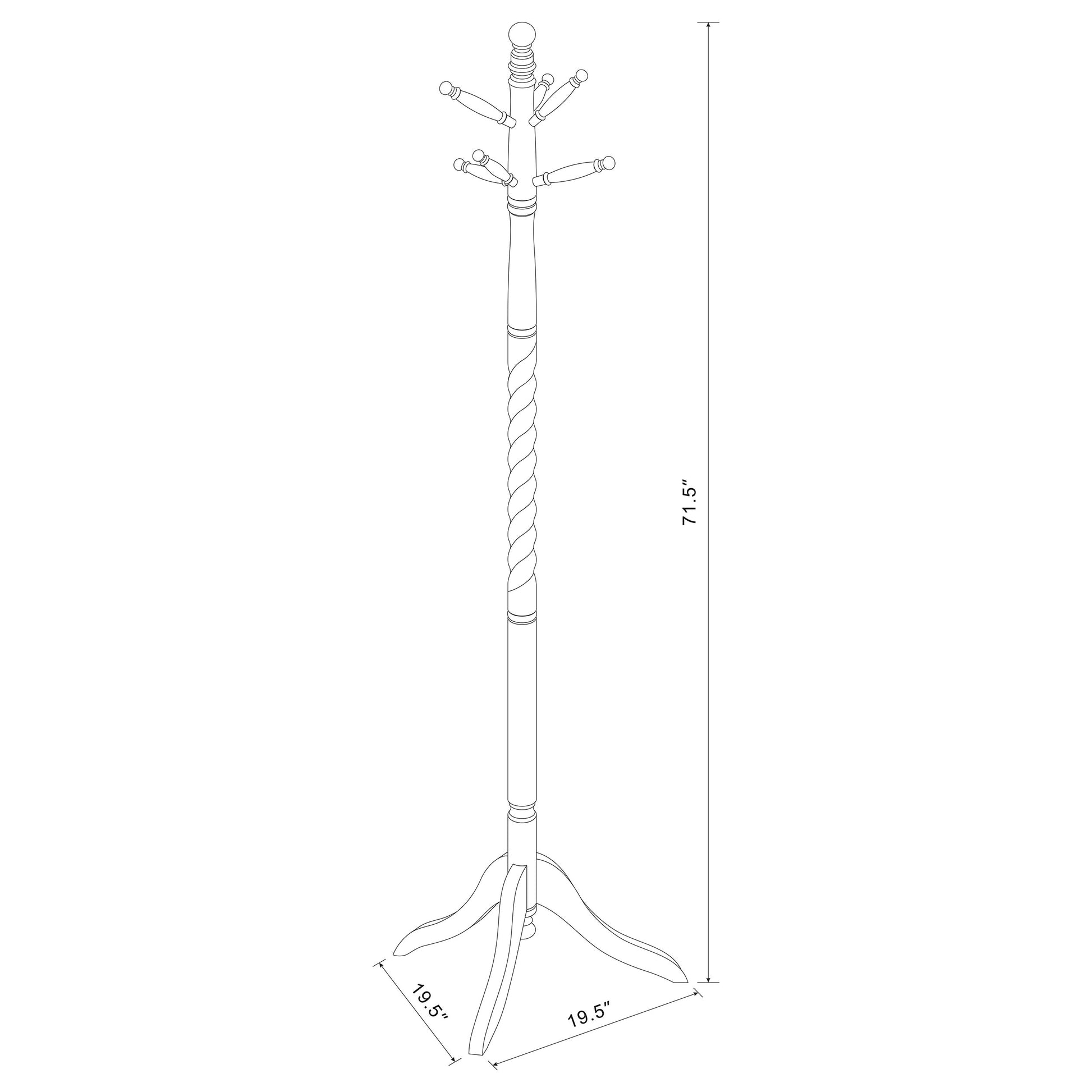 Crafted from solid rubberwood, this traditional coat rack showcases elegant detailing and lasting durability. The merlot finish enhances its rich tone, while a twisted post adds visual interest and classic appeal. Designed with two tiers of rounded pegs, it provides ample hanging space for coats, hats, and scarves. A three-leg base offers stability, making it ideal for entryways, offices, or living spaces.