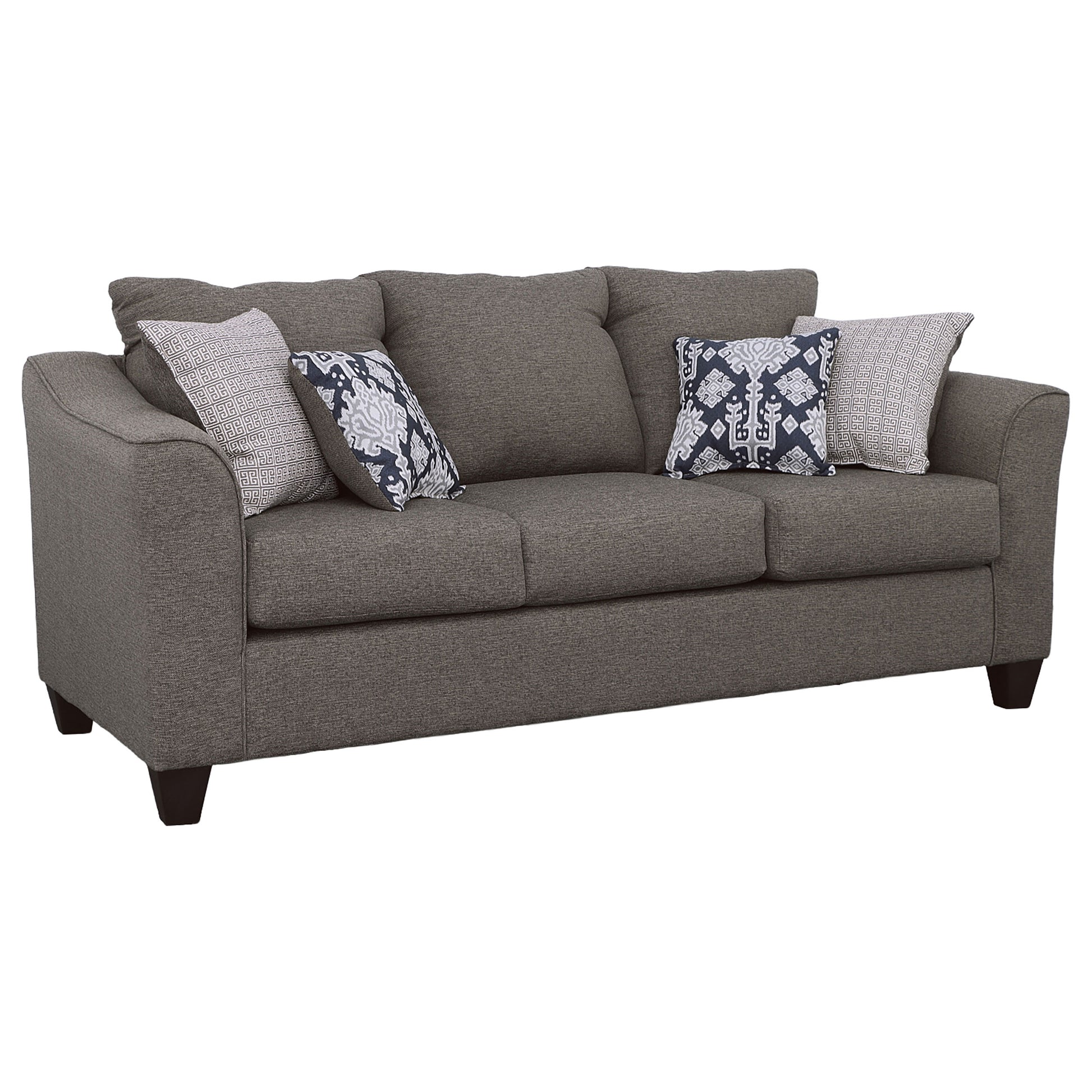 Timeless in design and rich in comfort, this sofa set unites coordinated silhouettes that balance form and function. Each piece features flared arms, foam cushions, and tailored upholstery that enhance a room’s sophistication while maintaining everyday comfort. Decorative accent pillows add texture and contrast, while the scaled design makes this set ideal for both cozy and contemporary living spaces.