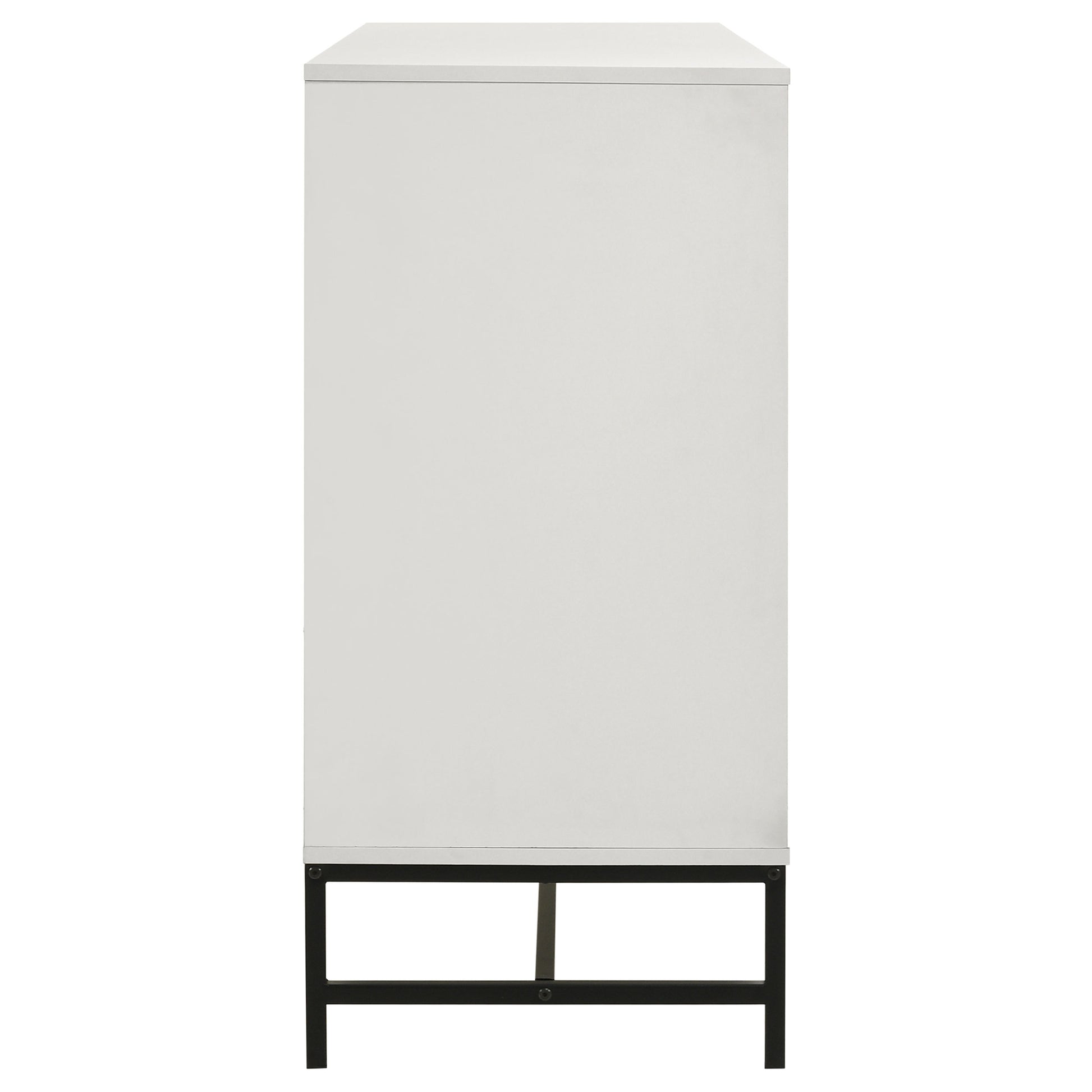 Fresh white brings bright, contemporary appeal to a modern six-drawer dresser. Perfect for a refined or casual bedroom space, it features a melamine finish that's durable and resistant to damage, great everywhere from master suite to a kid's bedroom. Each drawer features a long black finish bar pull that adds contrast. A matching black metal base elevates the dresser and creates an airy finishing touch. Use the top for decor that adds a personal touch to your bedroom.