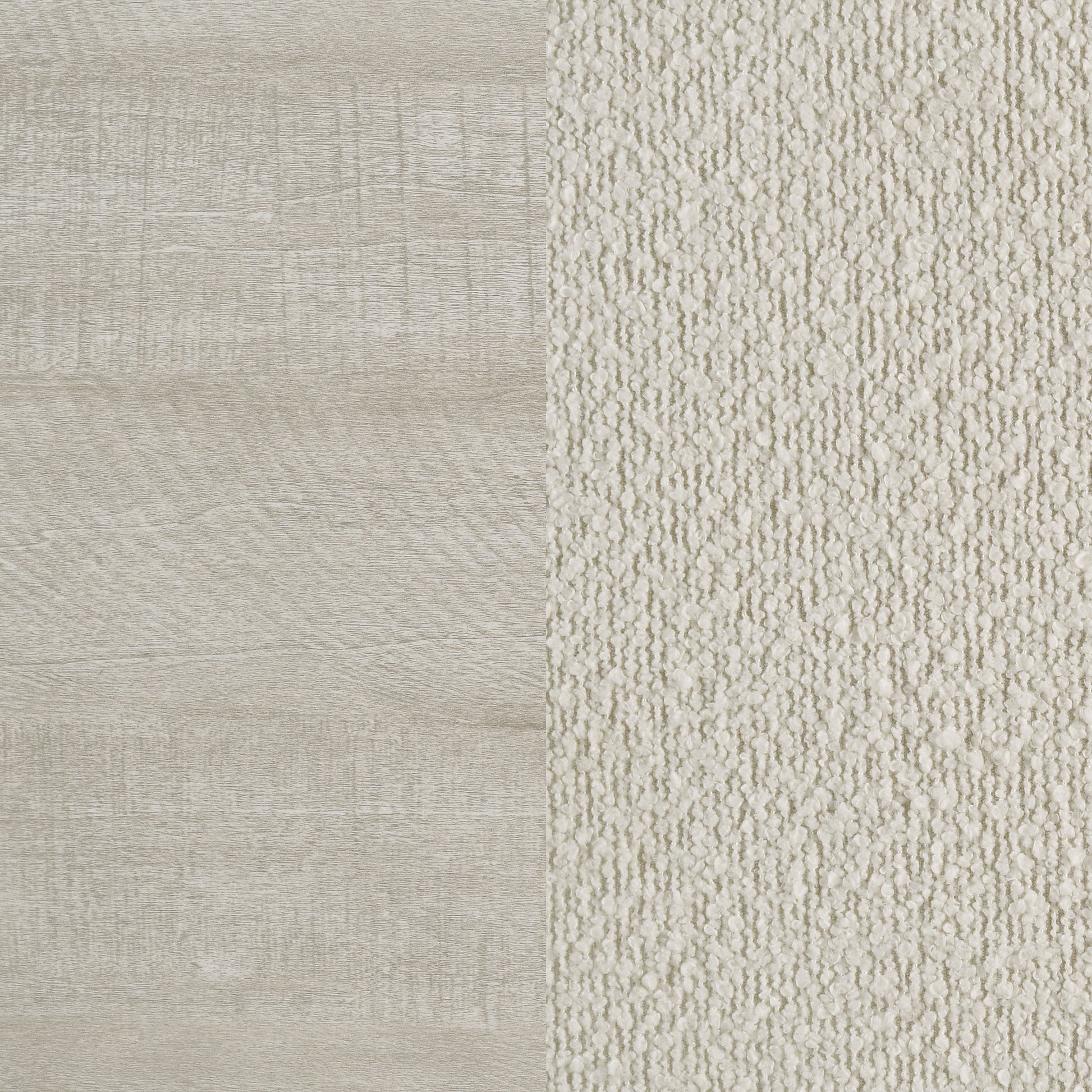 • Cream bouclé fabric headboard adds softness to clean lines